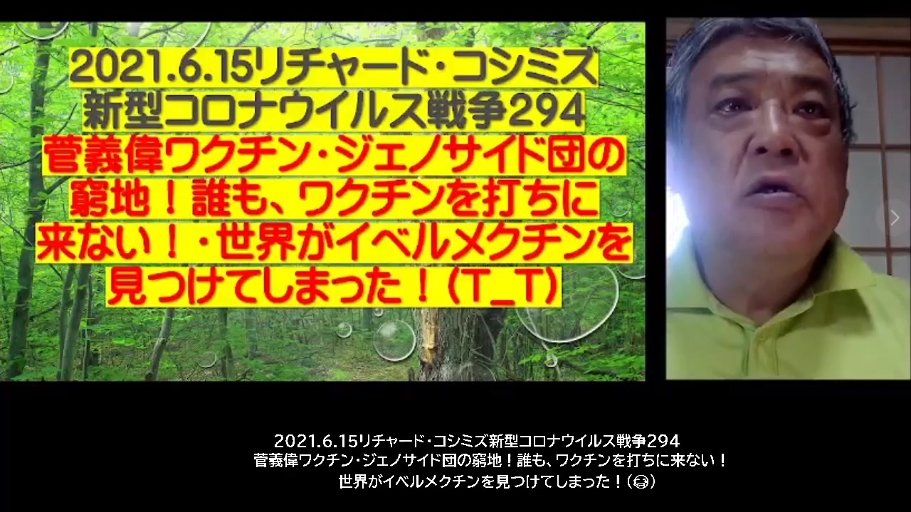 2021 06 15 リチャードコシミズ新型コロナウイルス戦争294 菅義偉ワクチン ジェノサイド団の窮地 誰も ワクチンを打ちに来ない 世界がイベルメクチンを見つけてしまった ニコニコ動画