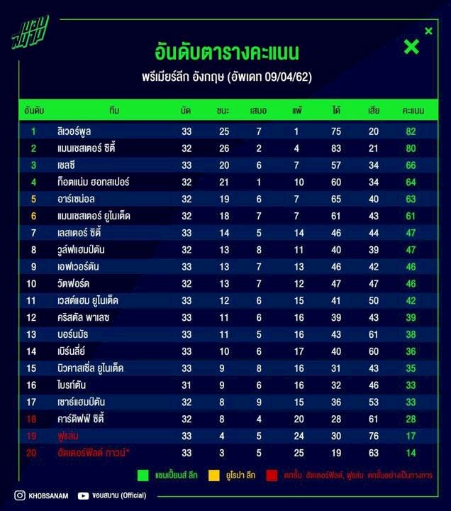 ตารางคะแนน ล าส ด ก บอ ก 2 แมทช ส ดท าย Pantip